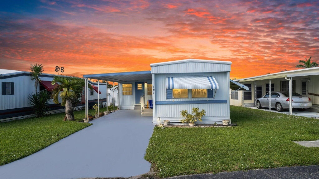 New roof with transferable warranty & quality laminate floor throughout the home in 2024 on this furnished 2 bedroom 2 bath mobile home including bonus room, automatic sprinkler system, attached car port and rear storage shed. Convenient Jensen Beach location off Savannah Road. Tropical Acres has low monthly maintenance due to cooperative ownership of the association, community pool with deck and bathrooms, clubhouse with kitchen, pool table, ping-pong, laundry and extra storage for a fee. 55+ Community, no land lease.