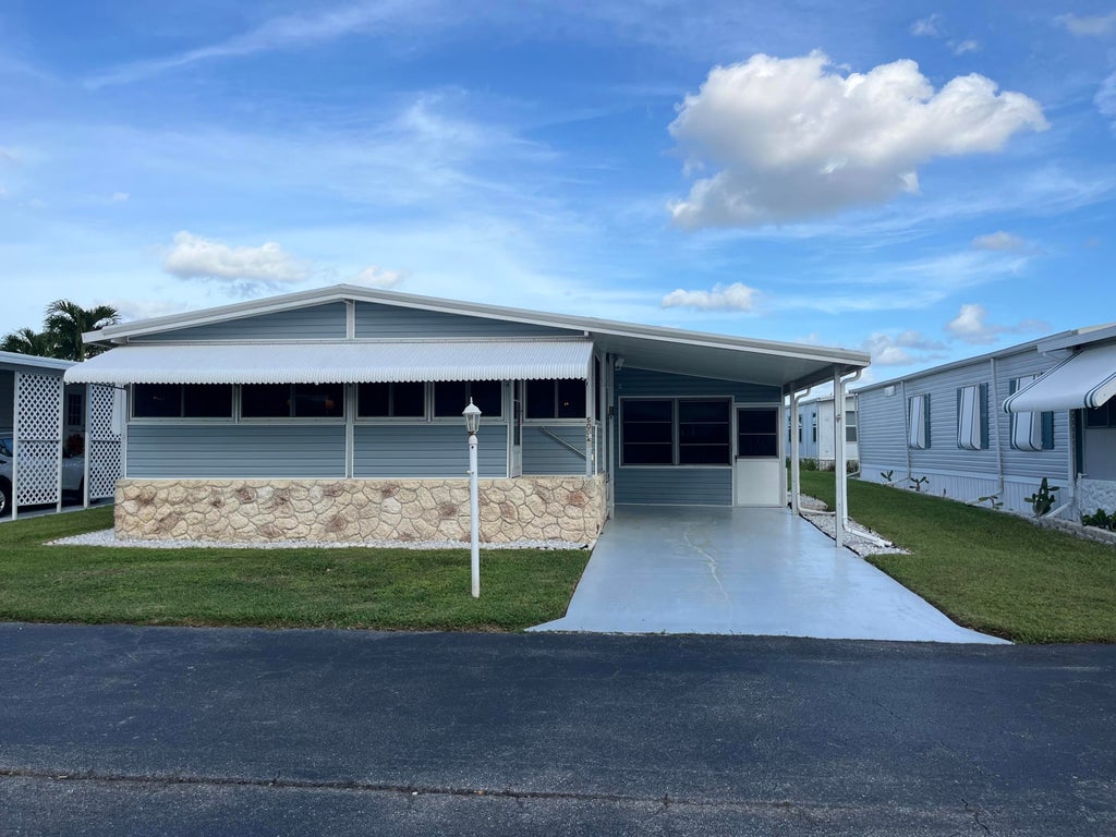 Charming double-wide mobile home located in the vibrant 55+ Jamaica Bay community. Featuring 2 spacious bedrooms and 2 bathrooms, newer LVP flooring that flows throughout the living spaces, complemented by updated countertops in the bathrooms. Relax in the inviting Florida room, equipped with a portable AC unit for year-round enjoyment. The carport provides an enclosed entrance to the main living area, complete with a staircase featuring a stair lift for easy access. A separate laundry room located in the covered carport area adds to the functionality of the home. HOA includes water, sewer, lawn care, and fiber optic Wi-Fi, for a hassle-free lifestyle. Amenities include a pool, clubhouse featuring pool tables, bocce courts, a dog park, and a variety of engaging activities. Don't miss out!