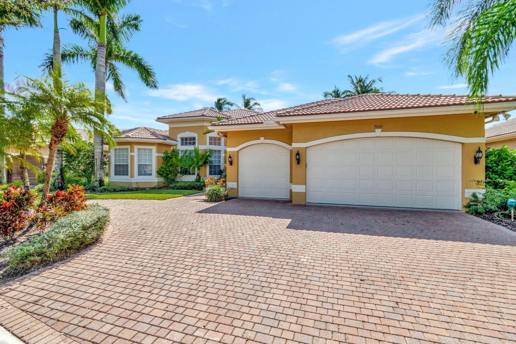 The Picasso model from GL Homes; The ultimate one story home available in Boca/Delray. As you enter this beautiful lake front home you are greeted by marble floors, high ceilings and floor to ceiling windows with views of the patio and lake. Featuring 5 bedrooms 4 full bathrooms and a 3-car garage. The white kitchen is complimented by granite countertops and large kitchen island with tons of cabinet space and stainless-steel appliances. Great cafe/breakfast area + a walk-in pantry. The Primary suite offers a large bathroom with dual sinks, and separate shower/tub as well as 2 large walk-in closets. Three-way split layout allows for privacy along with exceptional spaces to entertain with a custom built wet bar. Take a step outside and enjoy the large backyard with cover patio space and a