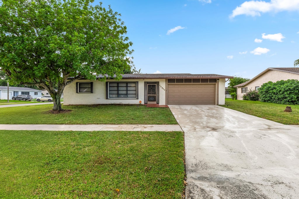 Welcome to this charming and bright 2-bedroom, 2-bathroom home with a den (or a third bedroom), a Florida room, and a private patio on a corner lot. Enjoy picturesque lake views from the front yard. This lovely property features accordion hurricane shutters, two skylights, a spacious 2-car garage, and low HOA fees, providing plenty of space and storage. The eat-in kitchen is equipped with granite countertops and stainless steel appliances. Conveniently located within walking distance of the pool and clubhouse, this home is just off Atlantic Ave, close to downtown, beaches, Delray Marketplace, shopping, and restaurants. The low monthly HOA includes access to resort-style amenities such as a pool, spa, sauna, pickleball courts, clubhouse, fitness center, tennis, shuffleboard, library