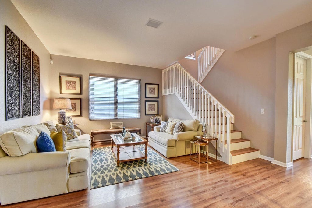Lakefront 2-story Beauty with upstairs master & bedrooms. Opal Model with beautiful lake view. 4 bedrooms, 2.5 baths, 2-car garage home in pristine condition. Upgrades include wood laminate floors throughout living areas and stairway. Kitchen with under mount sink, hi-hat package, granite countertops & tile back-splash. Real wood cabinets. Covered Patio overlooking the lake & much more. At Manned Gated Greystone that offers 4.74 acre Recreation site including clubhouse with fitness center, meeting room, resort style pool & separate wading pool with wet play area, lighted tennis court, basketball & sand volleyball court, tot lot & open lot/soccer field.