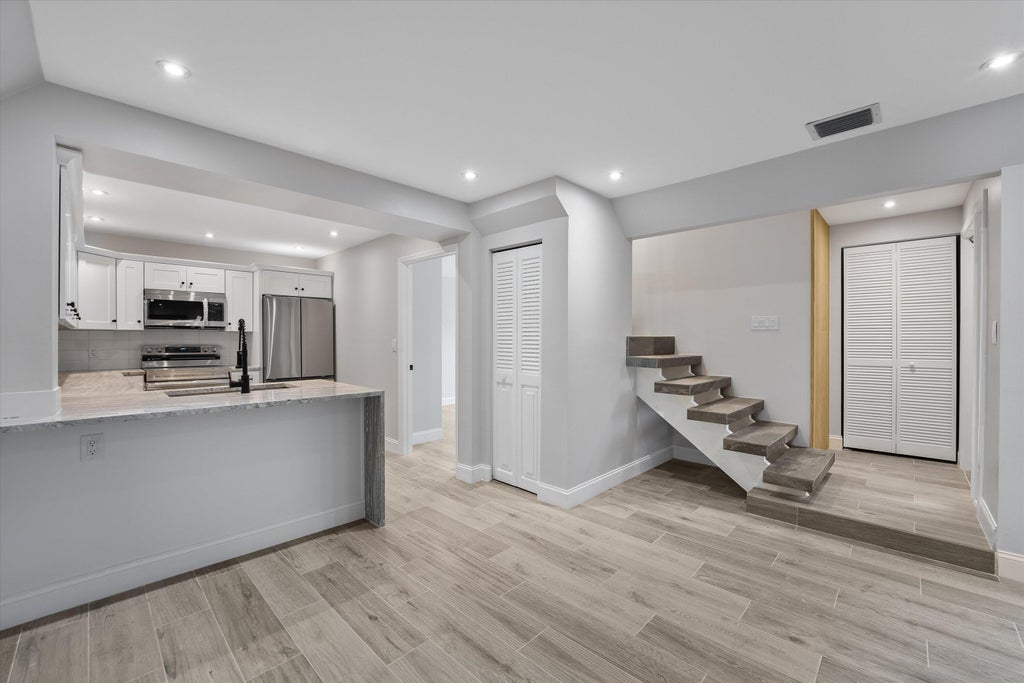 This gorgeous, completely renovated 3-bedroom, 2-bathroom townhouse is a true gem. Step inside to discover beautiful wood-looking ceramic tile flooring that flows seamlessly throughout the entire space. The modern kitchen is a chef's delight, featuring stunning waterfall granite counter-tops and brand-new appliances, perfect for whipping up your favorite meals.Freshly painted interiors and beautifully renovated bathrooms add a touch of elegance and comfort. Enjoy the convenience of having one bedroom with an en-suite bathroom located downstairs, while two additional bedrooms and a full bathroom are situated upstairs, providing ample space for family or guests.The fully fenced yard is a fantastic feature, offering privacy and a safe space for outdoor activities. Plus, a large