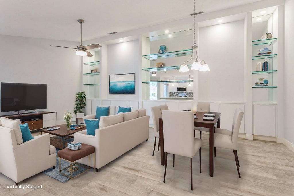 Price-repositioning ! Welcome to this impeccably renovated 2 bedroom, 2 baths townhouse, where no expense was spared to achieve the ultimate in luxury & quality. The enclosed front patio offers ample space for patio table, summer kitchen, all secured with Wingard hurricane impact sliders with secondary locks, Impact protection awning in 2nd bathroom, Impact accordion shutters for added peace of mind & energy-efficient savings. AC unit replaced in 2019, water heater 2014. Inside, ample storage awaits with well-placed cabinets & a dedicated utility closet on the patio, ensuring both convenience & organization. Kitchen offers stainless steel appliances, newer Calacatta Quarts counter tops. Both bathrooms display Quartz counter tops & new tile as well as faucets, toilettes & light fixtures