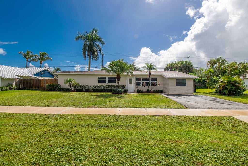 This CBS 3/2 ranch style home in the Villages of North Palm Beach features travertine floors, updated kitchen, and baths, with a great open layout and a nice spacious bonus room. It has a large tree lined fenced in backyard with room for a pool. Located 1/2 a block to Anchorage Park which has a boat ramp, dog park, volleyball, tennis and Pickeball etc.