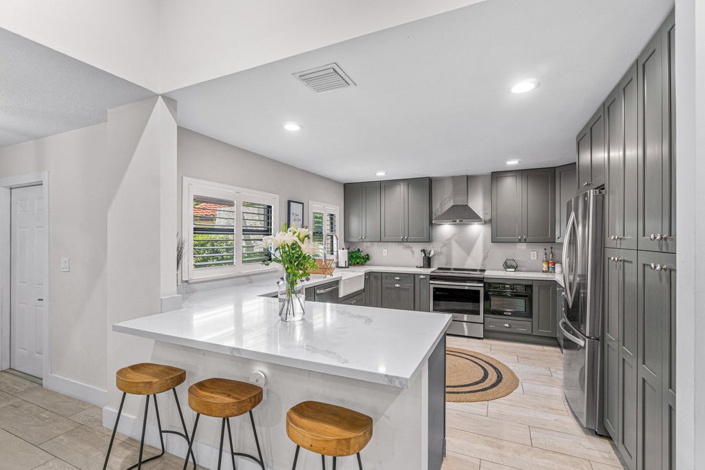The perfect Delray Beach rental available for a seasonal or annual rental. Offered at $4,000/m for an annual, $6,000/m for6+ months and $8,000/m for less than 6 months. This completely remodeled three bedroom, two bath open concept home with quality finishes throughout is in a guard gated neighborhood less than three miles from vibrant downtown and the pristine beach. Fine features perfect for entertaining include a large gourmet kitchen with stunning quartz countertops, loads of storage and stainless steel appliances. Volume ceilings, white distressed wood look tile floors, and impact doors and windows throughout, This split floorplan offers three large bedrooms with a private main suite, large walk-in closet and a luxuriously appointed bathroom.