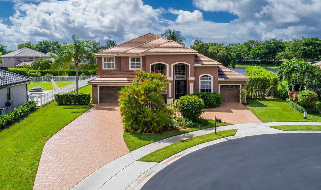 Stunning Majestic II model in the Majestic Bay section of Boca Falls. The home is a two-story with 5 bedrooms and 4.5 baths and has 3,699 SF under air. The Master Bedroom is on the 1st floor and there are 3 bedrooms and 2 full baths upstairs. The large .35 acre lot is in a quiet cul-de-sac on a lake. The home features a circular driveway, and a large fenced in back yard with an oversized pool. A new roof was installed in 2022 and the kitchen was totally renovated with quartz countertops, new cabinets and new appliances. The larger AC unit was replaced in 2022 and the smaller AC unit is 5 years old. Boca Falls is a wonderful community for families with highly rated Elementary, Middle and High schools all within 2 miles.