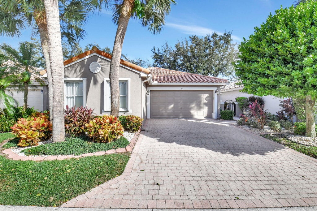 This beautifully landscaped home is a 2 bedroom 2 bath plus den home & is the largest model in the Wedgewood section of Cascades. The over sized kitchen has been updated with cabinets, countertops and stainless steel appliances. The A/C has just been replaced. The screened patio and kitchen have full view of the water view. The master bedroom is spacious with a vaulted ceiling, private view and a large walk in closet. The master bathroom has lots of storage space, a large shower, and a soaker Roman tub. The vaulted ceilings in the main area of the house make the home feel much larger. Gas generator with transfer switch included. There are two patios. Accordion shutters.
