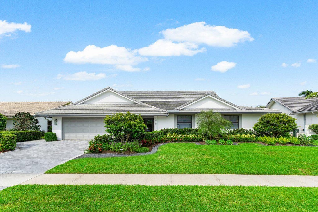 Welcome to this beautifully renovated, move-in ready home, situated on one of the largest interior lots in the highly desirable, award-winning Delaire Country Club. Recently updated both inside and out, this spacious residence features beautiful matte porcelain tile floors, a neutral color palette, and soaring cathedral ceilings that enhance the open-concept floor plan. The expansive kitchen boasts a large island, stylish backsplash, and ample cabinetry, complete with a dining nook. Ideal for entertaining, the home includes a wet bar and seating area, with walls of windows and sliders that open to reveal a massive, resort-style pool and tropical landscaping, including mature vegetation and even a mango tree. With three bedrooms, the primary suite offers abundant closet space, dual