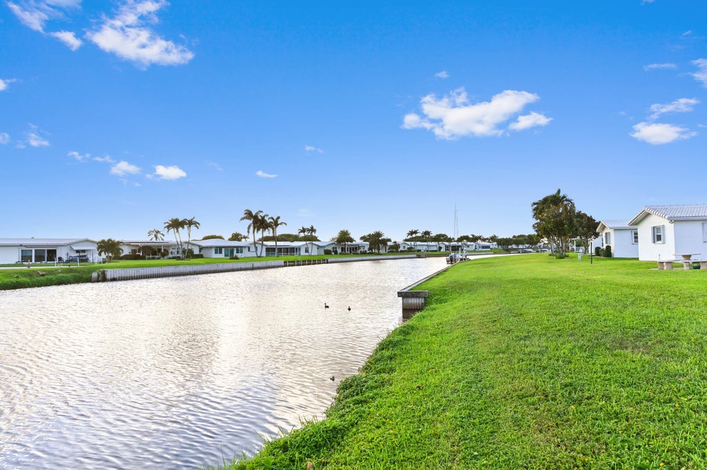 Just Renovated! Experience stunning water views from this charming 3-bedroom, 2-bathroom home. Enjoy the fresh look with new gray laminate flooring in the bedrooms, stylish designer lighting, and ceiling fans throughout. The kitchen boasts granite countertops and stainless steel appliances, complemented by a brand new washer and dryer for your convenience. French doors in the Florida room open up to an expansive screened porch, perfect for relaxation and tranquility.This vibrant 55+ community offers three clubhouses, each featuring heated pools and an Executive Par 3/Nine Hole golf course. Residents can take advantage of a full gym, game rooms, shuffleboard courts, whirlpools, billiards, and a calendar of monthly social events to keep you engaged and entertained.