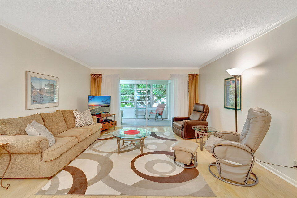 Come to see this well maintained and reasonably priced 2-bedroom 2bathroom unit in a desired community-Deauville Village. This light and bright CORNER unit features hurricane impact windows and the shutters on the patio, new electric panel 2023, newer AC 2020, updated kitchen with recessed lighting. The primary Bedroom has a large walk-in-closet, 2nd bedroom has a built-in office with extra windows. The unit is sold furnished, turnkey for the exception of some personal items. The condo is situated within the Villages of Oriole neighborhood, known for its community amenities and proximity to local attractions. Residents have access to features such as a newly built clubhouse, pool, and recreational facilities.
