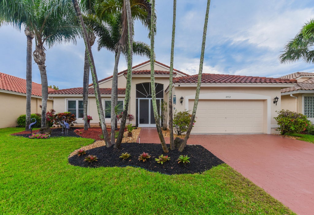 Perfection! From the moment you enter thru the enlarged entry way you're transported to a spa like oasis. The screened lanai was enlarged, and the landscaping is exquisite thru-out, perfect for relaxing or entertaining. Italian porcelain tile floors thru-out, smooth walls, spa bathrooms with fixtures from a 5-star luxury hotel. The finest PGT NEW Hurricane Vinyl impact Windows and Doors. White Shaker kitchen cabinets, quartz countertops with waterfall edge, wall oven and microwave and electric cooktop. This home is totally move in ready, immaculate and turnkey! Seeing is believing! Ponte Vecchio is a FABULOUS community; THE STATE OF THE ART CLUBHOUSE IS NOW OPEN! Great location, pickleball, shuffleboard, bocce, tennis, fitness center and pool