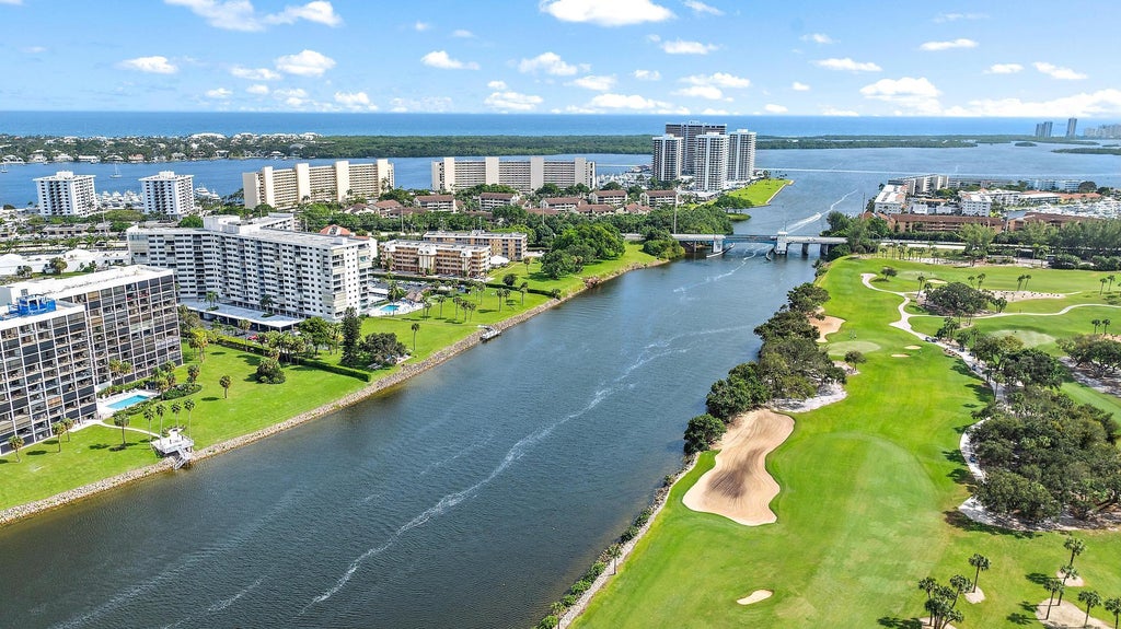 SELLER MOTIVATED, BRING ALL OFFERS! Experience breathtaking Intracoastal views from your spacious balcony. This beautifully renovated unit is move-in ready, fully furnished and includes a covered parking space for your convenience. It has been completely upgraded, featuring a new kitchen, fully renovated bathrooms, fresh flooring, new doors and baseboards finished with modern hi-hat lighting and ceiling fans. A new stackable washer and dryer in unit adds extra convenience to this pristine space.The building itself has undergone significant improvements, including restoration work, new roof, a newly installed tiki hut, and a beautifully renovated pool. Enjoy the updated dock, and two bocce courts for outdoor fun.