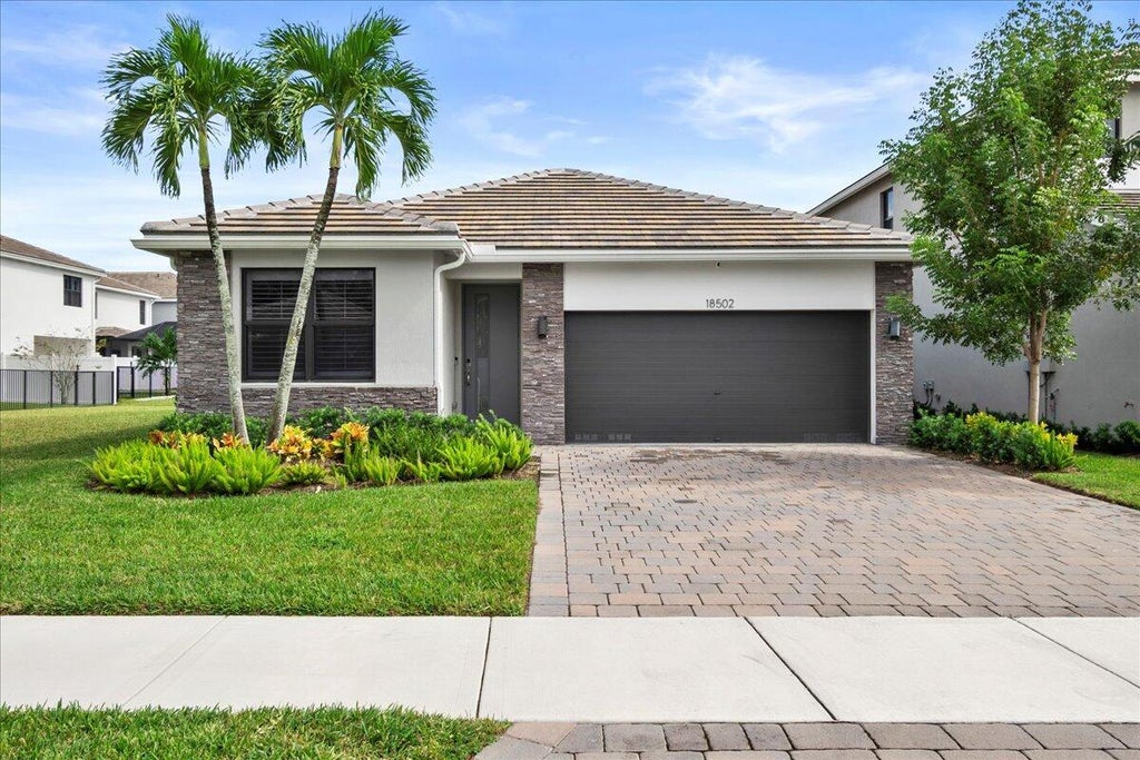 Welcome to 18502 Claybrook Street in beautiful Jupiter, FL! This inviting home, built by D.R. Horton in 2022, offers a perfect mix of modern style and comfort.With 1,710 square feet of living space, this three-bedroom, two-bathroom home is designed for easy living. You'll love the expanded living area that opens up to an extended screened patio with pavers, ideal for relaxing or hosting friends.The kitchen is a real highlight, featuring upgraded soft-close cabinets and sleek quartz countertops, all set on stylish tile flooring. The master bedroom comes with custom-built closets, providing plenty of storage space.Situated on a premium lot, this home offers stunning views of the lake and nearby preserve, making it a peaceful retreat. There's also a nice green space on the