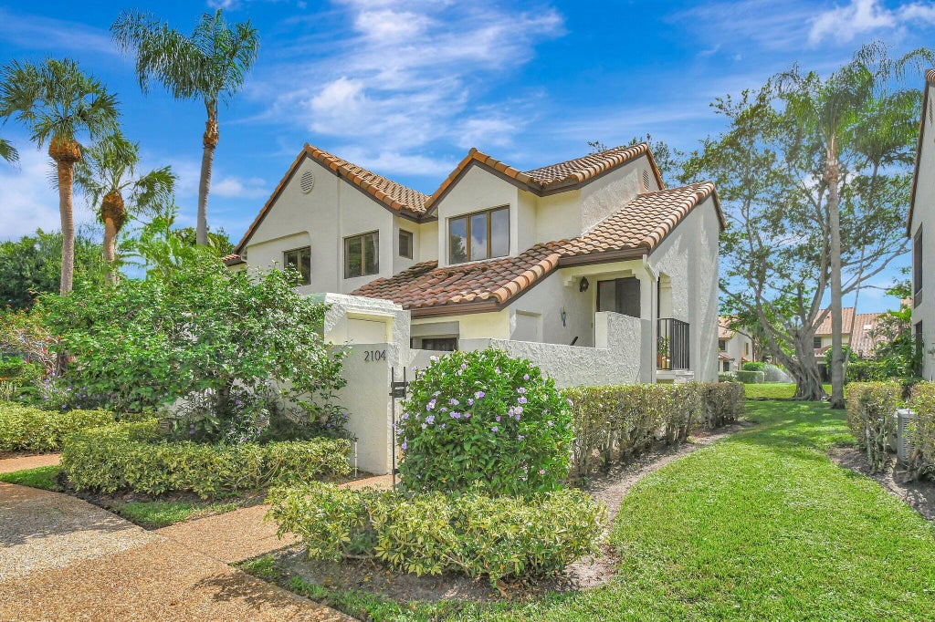 Bright and airy second-floor condo in El Viento at Boca Pointe! This end-unit offers a peaceful setting with southern canal views from the screened, covered patio with skylights. Vaulted ceiling enhance the spacious floor plan, featuring two bedrooms plus a den/office with built-ins. Tile flooring runs throughout, while the living room's wet bar is ideal for entertaining. The kitchen boasts stainless steel appliances, granite countertops, refaced cabinets with extra storage, an eat-in area, and a passthrough to the dining room. The master suite has a large walk-in closet, ample windows, and a marble-accented bathroom with double sinks. Recent water heater replacement. Includes two storage sheds at the front. Enjoy the community pool and tennis courts. Don't miss out on this gem!