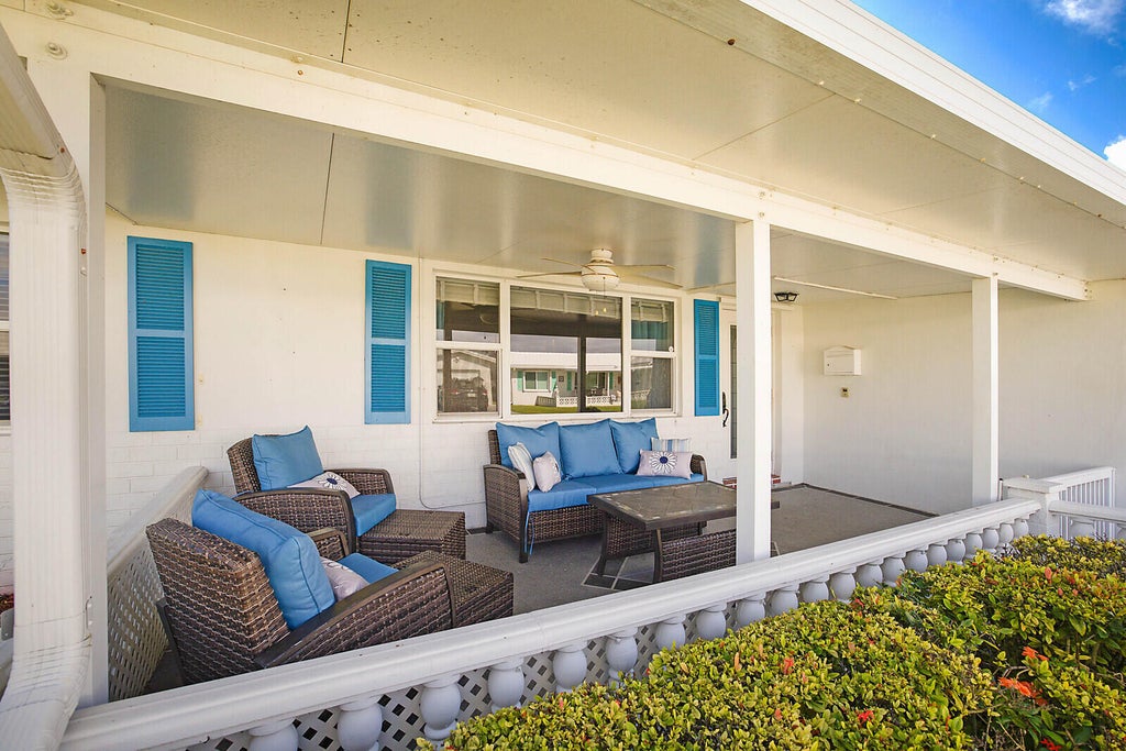 This beautifully updated 2-bedroom, 2-bathroom home in Boynton Beach's active adult community, Palm Beach Leisureville, is move-in ready with a 4-year-old roof, a newer air conditioner, and impact glass windows and doors. The modern kitchen features a chef's prep sink, newer appliances, pull out drawers and wood-look laminate flooring throughout. Both bathrooms have been renovated, and there's a lovely covered front patio and a spacious back patio, ideal for barbecues. Landscaping is maintained by the association, allowing for low-maintenance living. Palm Beach Leisureville offers exceptional amenities, including three clubhouses with heated/cooled pools, billiards, card rooms, shuffleboard, BBQ areas, and more. Clubhouse 1 includes ping pong and the administration offices; Clubhouse 2