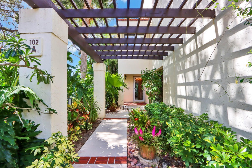Welcome to this stunning ground-level townhouse located in the highly desirable Sea Oats community in Juno Beach. Featuring 3 bedrooms and 2 baths, plus a 1-car garage! Step inside to discover beautiful hardwood floors throughout and a spacious kitchen with plenty of storage and sleek stainless steel appliances. The open layout is perfect for both everyday living and entertaining, with a bright, inviting atmosphere. Enjoy the convenience of remote controlled Hunter Douglas window treatments for easy light adjustment.The outdoor area is a true gem - a private space surrounded by lush landscaping, ideal for relaxing or hosting guests. The third bedroom can be utilized as an office or bedroom with a modern murphy bed for guests. This property is move in ready!