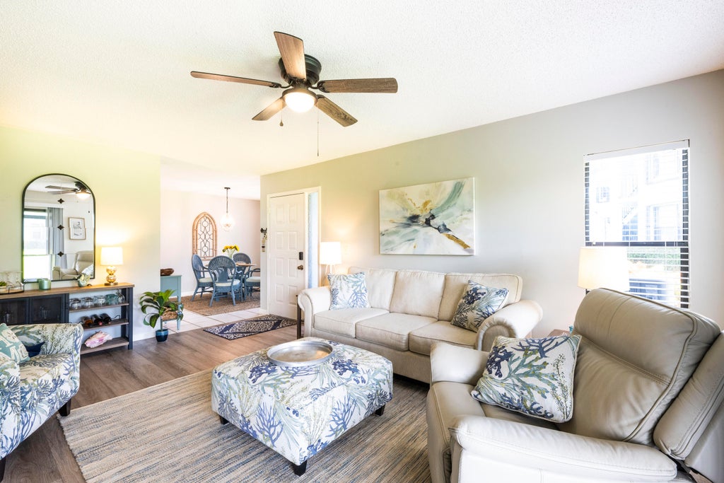 Welcome to Poppleton Creek in the heart of downtown Stuart, FL. This Open Concept, Corner, Ground Floor, 2 bedroom/2bath CBS Condo is the perfect Low Maintenance home for anyone of All Ages! Impeccably Decorated Interior! All Furnishings are Negotiable! LVP Flooring throughout Living areas & Bedrooms. Walk to Downtown & Waterfront Restaurants & Shops, Publix, The Lyric Theater and so much more! Enjoy pristine views of native birds & Poppleton Creek (Navigable, Ocean Access Waterway) from your newly screened in Patio and Master Bedroom. New A/C (Dec 2022). New Hot Water Heater (Feb 2022). New Screen Room (Apr 2022). Approx 5 miles to world class Stuart Beaches! Motorcycles & Pickup Trucks accepted (No Commercial Vehicles). When available, docks are bought & sold between unit owners. WOW!