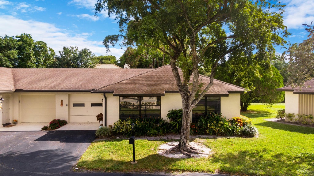 Welcome to your Greentree Villa in the heart of Boynton Beach! This spacious 1,400 sq. ft. corner unit offers 2 bedrooms, 2 bathrooms, and a one-car GARAGE w/ full size WASHER AND DRYER, providing ample room with serene views and no rear neighbors. Enjoy FLOOR-TO-CEILING windows, a screened patio, and an UPDATED kitchen with stainless steel appliances and plenty of storage. Both bathrooms are also updated for a modern touch. Located in a vibrant 55+ community with mature trees and multiple pools within walking distance, this home includes HOA-covered cable and well-funded reserves for peace of mind. Embrace the best of Florida living!