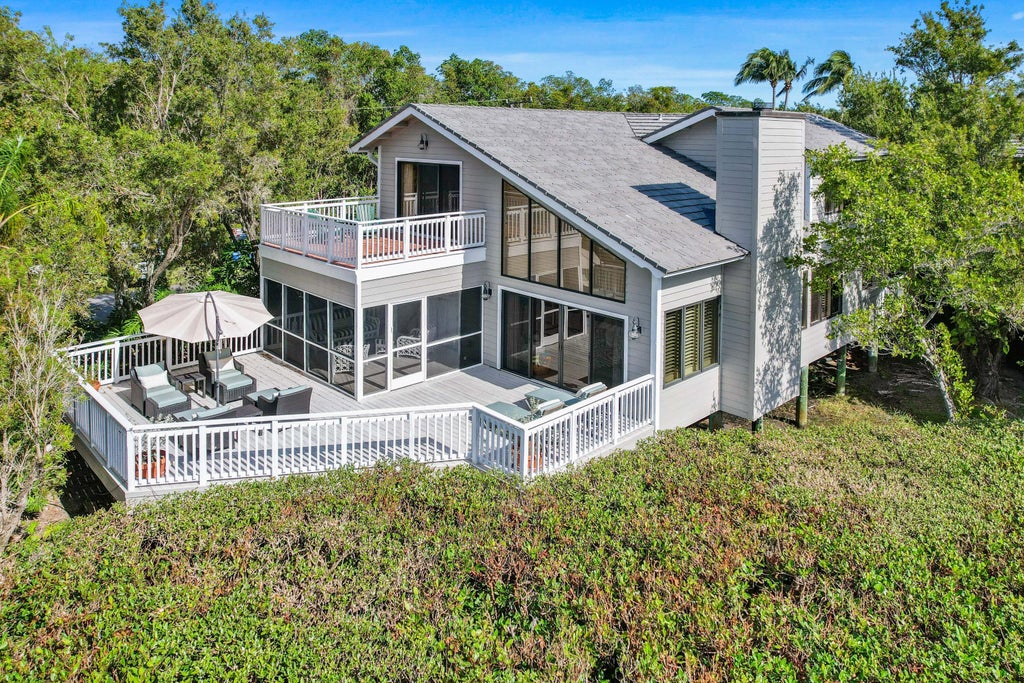 From the moment you arrive, you are welcomed to Florida casual living at its best. Inside this spacious, split-level coastal retreat you will discover a traditionally coastal palette, a fully renovated chef's kitchen, plenty of windows, hardwood floors and a vaulted pecky cypress ceiling in the living room. The main bedroom, kitchen, living room and dining area enjoy the convenience of the first level which incorporates access to two large deck spaces for casual dining or relaxing. The upper level presents two spacious en-suite bedrooms as well as a large bunk room with access to a private full bathroom. Some of the best marina views can be captured from the upper terrace located off the second bedroom suite, which could also serve as a second master bedroom. Being offered furnished.