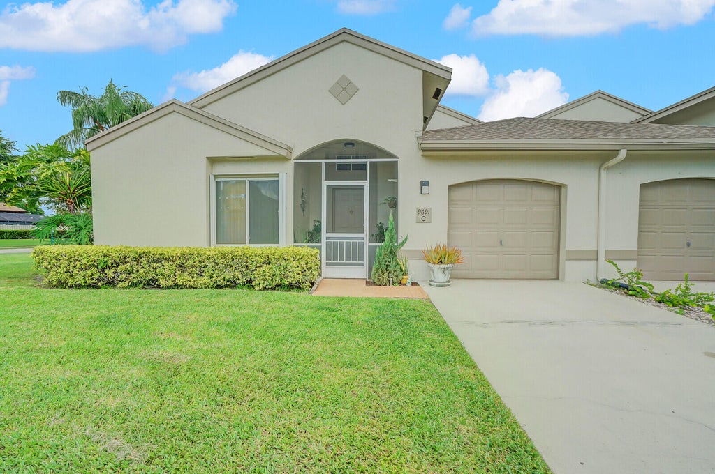 Welcome to your dream villa in the coveted Boca Gardens community! This beautifully maintained 3-bedroom, 2-bath home is designed for effortless Florida living. Enjoy the open and inviting floor plan, filled with natural light and perfect for gatherings or quiet evenings. The spacious kitchen, cozy living spaces, and tranquil bedrooms create the ultimate retreat. Step outside to a private patio, ideal for savoring the tropical lifestyle. Conveniently located near upscale shopping, dining, and entertainment, with pristine beaches and top golf courses just minutes away. Experience the best of Boca Raton in style and comfort! Look no more! Roof is 1 year young! Conventional financing available with as little as 3% down for qualified buyers. Very affordable insurance.