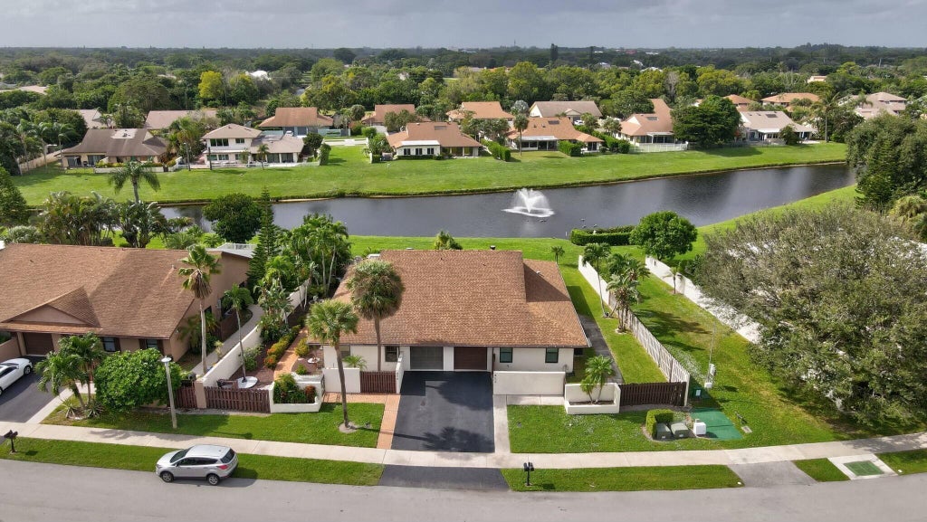 An exceptional 3-bedroom, 2-bathroom water-front villa in the desirable Woodlake. This villa is in the best location in the community, centered on the lake and close to the communities pool and facilities. This home boasts an expansive lakefront view, with plenty of space for outside enjoyment. The spacious floor plan is designed to feel much larger than its listed square footage, with soaring volume ceilings and an abundance of natural light. Featuring both a central plant-filled atrium, and the added privacy of no neighbor on the northern side. The home also features a large enclosed Florida room, perfect for enjoying the serene views year-round. A deep single car garage allows for both vehicle and storage space. Woodlake offers low HOA fees, while maintaining high standards for