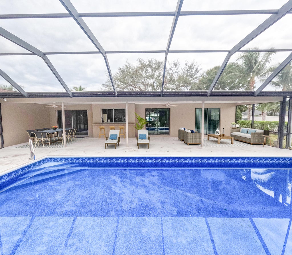 This is a rare four bedroom home in a special community where, according to the plaque at the newer and improved community boat ramp ''Neighbors working together to improve TCC's charm & character.'' The split plan home is waiting for a buyer to make it their own. The roof was replaced in 2022. The windows are impact glass. The screened patio and pool are a perfect area to enjoy Florida living. Custom cabinetry, chair rail and crown molding add special charm to the residence. In addition to the boar ramp the community offers a day-dock, water access for boating, kayaking and paddle boarding on the beautiful Loxahatchee River. The HOA is voluntary. A short golf cart ride to Tequesta Country Club or Turtle Creek Club. Some photos have been digitally staged.