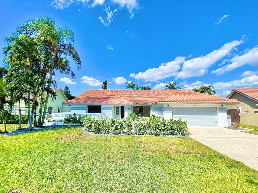 Welcome to 9617 Majestic Way. This sun-soaked home boasts 4 Beds / 2 Baths / 2 CG / Saltwater Pool / & 2,279sqft under air - on a QUARTER OF AN ACRE! Top of the line interior is professionally designed w/ tropical & coastal finishes. Step through the foyer & see the cathedral ceilings & open concept Great Room. Masterful ''eat-in'' kitchen complete w/ sage green/white cabinetry, quartz countertops, SS appliances, & island large enough to seat 4! Waterproof vinyl & 5inch baseboards throughout. Volume Ceilings in the master suite along with a walk-in closet, & modern bathroom. Spacious 2nd & 3rd bedrooms w/ lots of closet space. Gorgeous guest bath is large & also features dual sinks. Built-in sound system in and outside! Luxurious ''Hawaiian Blue'' pool area is ready for memories.