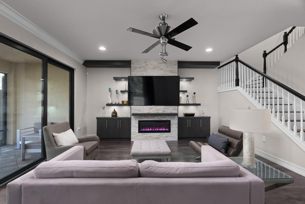 Welcome to this beautifully updated 4-bedroom, 3-bathroom home with stunning, deep lake views in the highly sought-after gated community of Tuscany North. Step inside to find a spacious, open-concept layout featuring a chef's kitchen with sleek white shaker cabinets, double islands, and high-end finishes throughout. The large loft offers a perfect space for relaxation or entertainment, while the generous laundry room is conveniently located upstairs. Enjoy the luxury of resort-style living with access to an amazing clubhouse, perfect for gatherings and leisure. This home combines modern elegance with picturesque views and an exceptional community. Don't miss this opportunity!