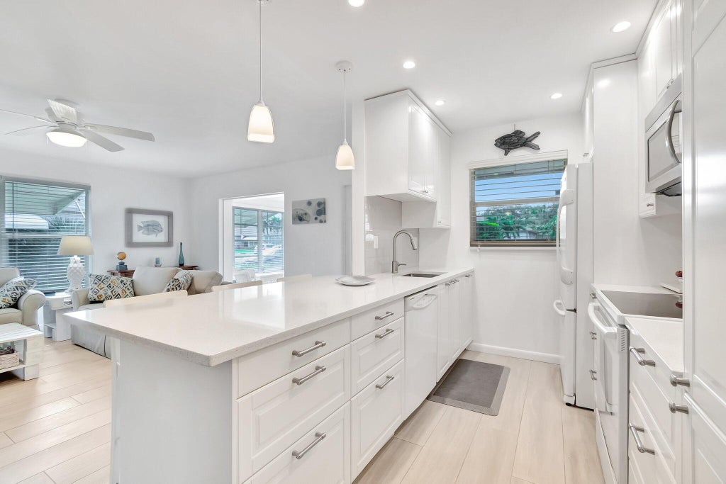 Pride of ownership is evident from the moment you step into this newly updated corner 2BR/2BA villa that boasts a coastal pastel look and feel. Villa features: Open concept kitchen with quartz counters, single SS sink, White cabinets with pull out drawers, Neutral flooring throughout, no popcorn ceilings, Water hater 02/21, AC 2004 minimally used 3-4 months a yr., level floor in Florida rm under air, New windows throughout, updated/painted frames on windows in Florida room, newer appliances, master bedroom has an added wall with extra closets, master bathroom has a barn door, new electrical panel. Welcome home to Florida living at its best in this very active 55+ community where you'll enjoy many planned social activities large heated resort style pool W/clubhouse, pickleball, tennis