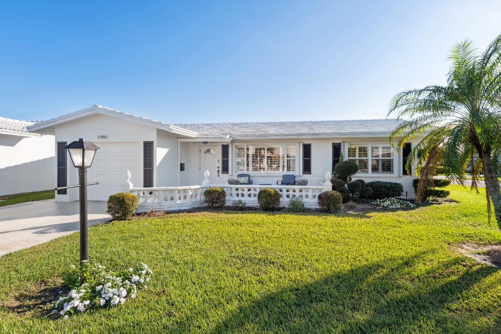 One of Leisureville's finest homes. This exquisite corner Edgewood is better than new. All custom kitchen cabinetry with extra cabinets Specially designed unique eat in area in kitchen. Corian countertops and all stainless-steel appliances. Recessed lighting. Neutral Tile throughout with laminate flooring in bedrooms. Windows all replaced with hurricane rated accordion shutters. Interior plantation shutters plus crown molding. Front and back patios lushly landscaped.Double concrete drive. Electrical panel and garage door replaced. Roof replaced 2007. A/C replaced 2018. Paid up recreation lease in full. This home is truly a rare find. Owner will consider selling furnished separately. Free 18 Hole Par 3 Golf, 3 Active Clubhouses with heated pools. Minutes to ocean beaches, A GEM