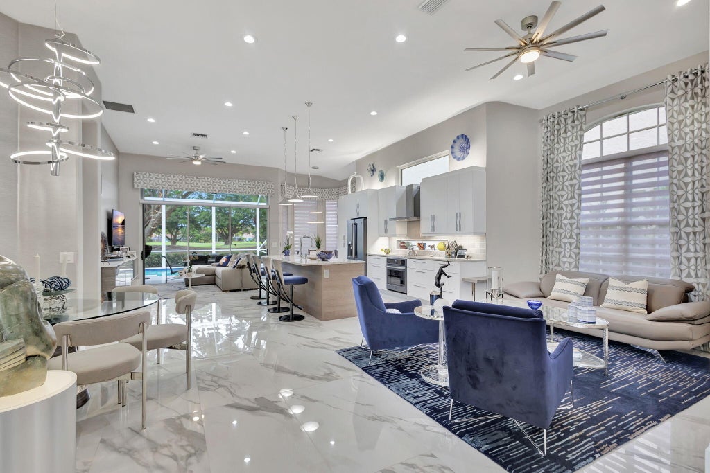 This is it! NO expense spared at this decorator custom home. Stunning views of golf, water and banyans. Smartly reimagined and reconfigured, one of a kind. Artistic touches. High end appointments. Complete renovation.Exclusive Diamond Head of Eagleton community- double gated.4 Bedrooms, and office and loft, 5 total bathrooms, newer pool and fountains, marble patio, newer roof, newer impact glass and newer accordion shutters on first level.Main bedroom, guest bedroom and office on first level. laundry room, covered patio.This home must not be missed. Please only the most discriminating clients.