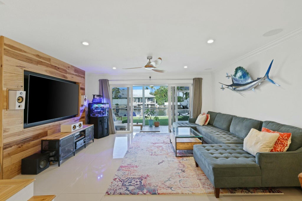 Corner townhome in Tropic Isles, featuring 2 bedrooms, 2.5 baths, and waterfront access. Both the unit and the building have been completely updated, including a modern chef's kitchen with a vented hood, opening to the dining and living areas with tranquil water views. Upstairs, the guest suite offers a private bathroom, while the master suite boasts a spacious en-suite bath and a private balcony with breathtaking views of the water. Additional upgrades include impact windows and doors, a new roof, EV charging capabilities, a freshly paved parking area, and generator readiness.This sought-after community also offers shared dock leasing for boats up to 40 feet and a stunning pool with a deck for outdoor enjoyment.