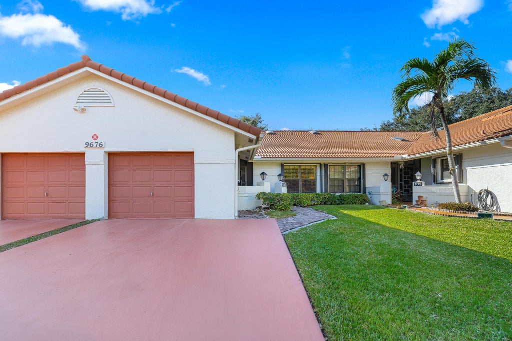 You'll love the gorgeous unobstructed LAKE view from this great, 2 bedroom, 2 bathrooms PLUS Den, ground floor, turn-key villa with a 1-car garage in a fantastic active 55+ community. The eat-in kitchen was updated in 2019 and is equipped with stainless steel appliances, granite countertops, backsplash, pantry and breakfast area. The primary bedroom features a view of the lake, and a walk-in closet. The primary bathroom is finished with dual sinks, granite counter and a shower. Step out to enjoy a peaceful oasis on the paved patio by the serene lake, or in the enclosed FL room. Other notable features include vaulted ceiling, 2019 AC, 2016 water heater, exterior accordion shutters and interior plantation shutters. San Valley East is a great development featuring pool, clubhouse, tennis