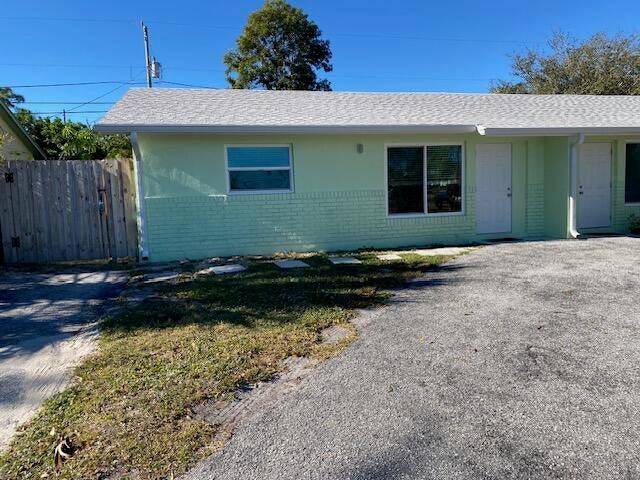 Updated 2 bedroom, 1 bath unit with newer kitchen cabinets, granite countertops, newer appliances w/ washer & dryer, there is no dishwasher, newer bathroom remodel, neutral tile in living room, wood look vinyl in kitchen and bedrooms, newer impact windows, newer electric panels, outlets & switches, fully fenced backyard with privacy fence between the units, storage shed, newer plumbing hardware, water & lawn care included in the rent. No aggressive breed dogs. Renters Insurance and Pet Insurance required.