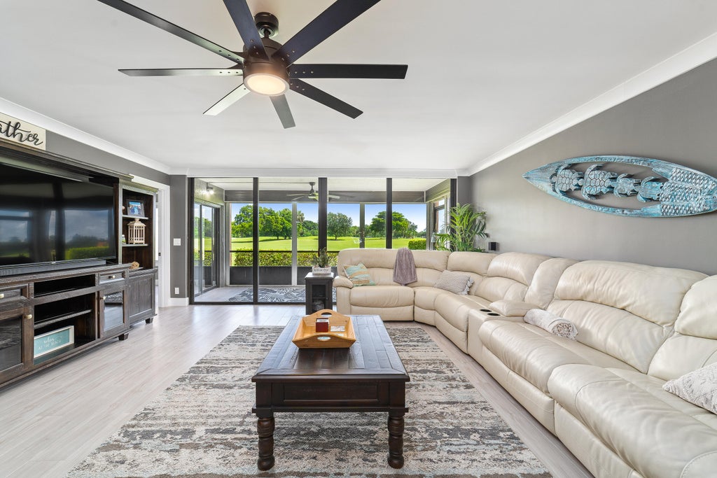 Discover this beautifully renovated 2-bedroom, 2-bathroom condo, perfectly situated in the desirable Green Lakes community. Inside you will find a spacious, open floor plan filled with natural light, creating a bright and inviting atmosphere throughout. Unwind on your screened patio while enjoying serene views of the golf course action. The home boasts exceptional finishes, from waterfall quartz countertops to high-end fixtures, ensuring no detail has been overlooked. Enjoy the convenience and ease of an in-unit washer and dryer. Additional amenities include a dedicated storage space for bikes, beach gear, and golf clubs. The condo is just a short distance from the community pool, complete with a picnic area and grill, perfect for leisurely afternoons.