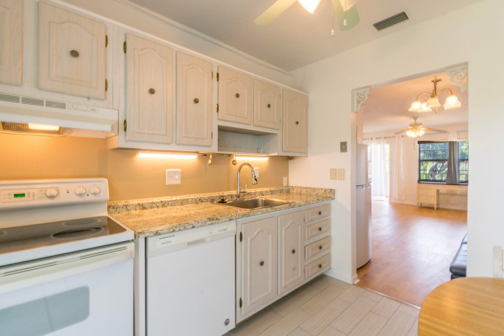 Discover the charm of Delray Beach in this beautifully semi-renovated condo. With freshly painted interiors and stylish updates, this home features a sleek new vanity and contemporary faucets in the bathroom, upgraded kitchen fixtures, and a brand-new refrigerator to complement your daily lifestyle. The condo offers low-maintenance living with laminate flooring throughout and durable tile in the kitchen and balcony--completely free of carpet for effortless upkeep. Relax and take in the stunning balcony views or step outside to enjoy the serene surroundings. Conveniently located near the Delray Beach Marketplace and just a short drive to Delray Beach
