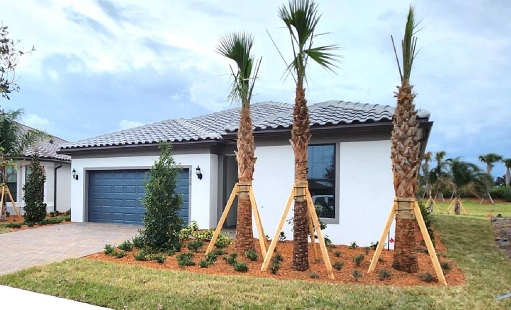 NEW CONSTRUCTION: Immediate Move in = Immediate Savings! This 3-bedroom Palmary plan is an absolute jewel thanks to it's impressive gathering area and stunning built in kitchen with welcoming oversized island. Enjoy your private backyard from the screened in covered lanai. On-trend finishes can be found at every turn including oversized tiles flowing through the living spaces and owner's suite and elegant Silestone countertops and backsplash. Enjoy living in new construction without living in a construction zone in this nearly sold-out community!