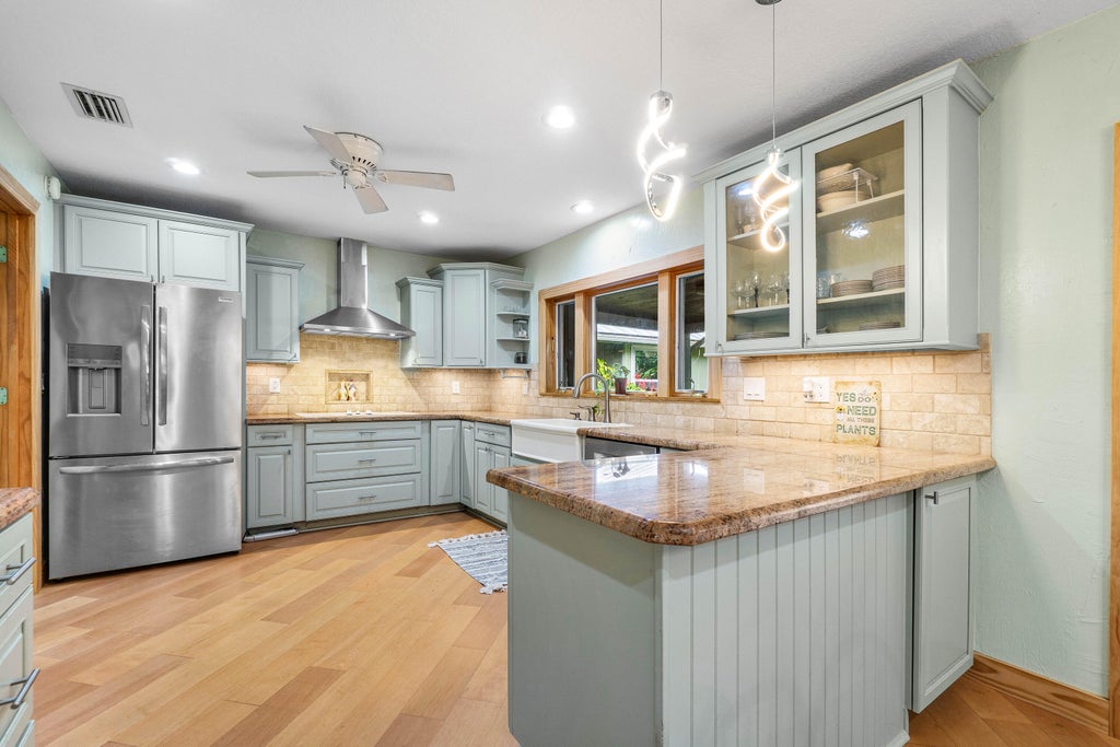 Welcome to ''Tropical Pines'' a 2.5 Acre property with a 4 BR main house, 2 BR guest house. The hurricane rated CBS barn can offer protection for your animals or easily be converted to a garage or shop. Located on a quiet paved road in Jupiter Farms, The home provides the infrastructure that makes country living comfortable and secure. Step inside to find new luxury vinyl plank flooring throughout. Brightened by recessed LED lighting enhancing the modern aesthetic. In the kitchen you will find granite countertops and solid wood KraftMaid cabinets.