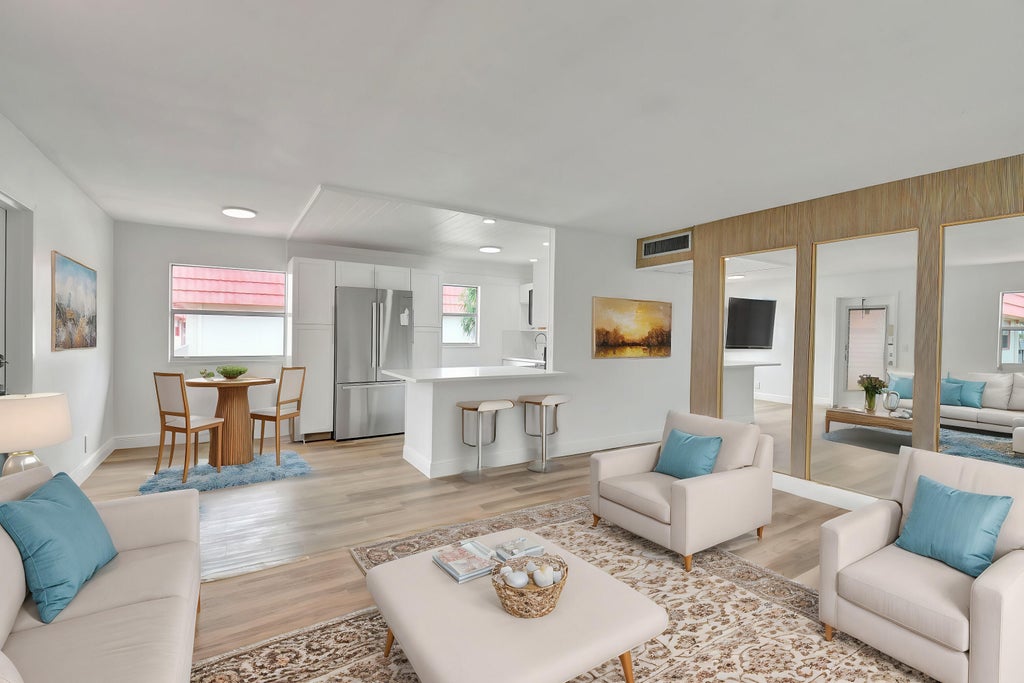 WINTER SPECIAL! Come visit this beautifully renovated, modern, and turn-key condo offers high-quality design and amenities throughout. The unit features new floors, brand-new upscale stainless steel, energy-efficient kitchen appliances, and ample storage. The space is bright and naturally lit, complemented by new LED lighting. Enjoy a spacious, enclosed sun porch perfect for relaxation. Bathrooms are luxurious and modern, and the condo is thoughtfully positioned to reduce summer heat. The landscaped surroundings add curb appeal, and convenient parking is available right in front of the unit with easy access via Linton Blvd. In terms of location, it's ideally situated within walking distance to Publix, Walgreens, and the Monaco clubhouse. Here, you'll find a variety of amenities, including
