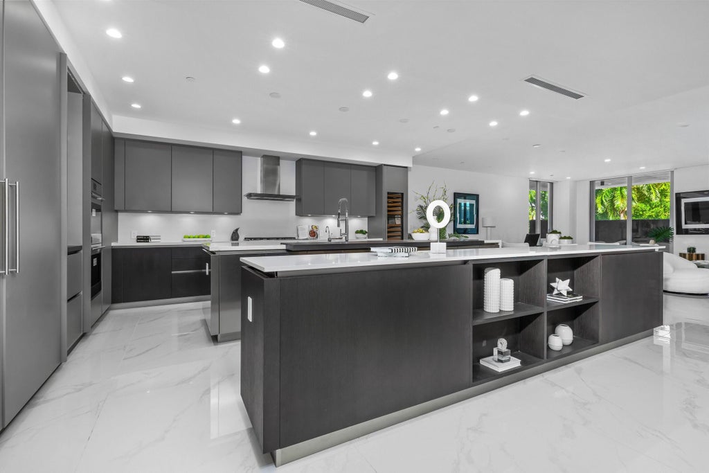 Introducing a one-of-a-kind second-floor villa in the exclusive 16-unit East Tower at Royal Palm Residences. Unit 201 is one of the most desirable units in the entire building, as the coveted '01' stack is a highly sought-after corner unit. This luxurious brand-new condominium offers 4 bedrooms, 4.5 bathrooms, and 3,741 square feet of sophisticated living space. Step into elegance with a private elevator entry leading to a gourmet kitchen, featuring top-of-the-line Italian cabinetry, natural gas cooking, and a built-in Wolf gas barbecue grill on the terracea"perfect for outdoor entertaining. Enjoy an expansive wraparound terrace that showcases views of the Intracoastal Waterway and the newly developed Silver Palm Park.