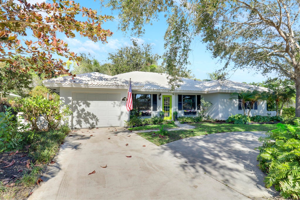 Welcome to your slice of paradise. Come see this updated well maintained 2 bedroom 2 bath CBS (Concrete Block) home in the tranquil 55+ aged community of Little Club in Tequesta. This lovely home features granite kitchen counter tops with 42'' custom made kitchen cabinets, a full appliance package (refrigerator and stove replaced 2021, water heater replaced 2020), tiled flooring throughout the home (no carpet here), a utility/storage room off the kitchen perfect for a small home office or exercise room and a jacuzzi tub in the main bathroom to soak away in. French doors lead to a large screened in patio with mexican tile flooring & a knotted wood ceiling overlooking a lushly landscaped back yard fully fenced for privacy. The barrel tile roof was replaced in 2006. (see more)
