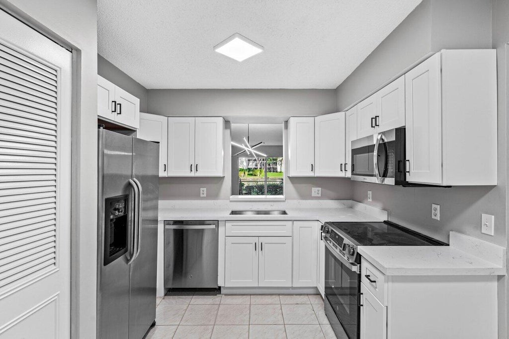 Discover this beautifully updated FIRST FLOOR, LAKE FRONT, one-bedroom, two-bathroom condo located in 55+ Huntington Lakes Delray Beach. This home features NEW stainless steel appliances, elegant white quartz countertops, and stylish shaker cabinets. Enjoy the convenience of tile flooring throughout and an in-unit washer and dryer. The bathrooms have been tastefully refinished, complete with a glass shower enclosure and new vertical blinds. Please note, first, last, and security deposits are required, along with a minimum credit score of 620+.