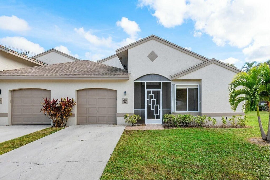 Welcome to Boca Gardens - A Home That Checks All the Boxes! Step into this sought-after single-story 3-BD, 2-BTH Villa, featuring a spacious split-bedroom layout and soaring volume ceilings that flood the home with natural light. Designed for both comfort and style, the large eat-in kitchen comes equipped with an inside laundry closet and ceramic tile throughout. Enjoy the privacy and space of your expansive side yard, with no side neighbors to interrupt your peaceful retreat. Relax or entertain on your private screened patio, a perfect spot to enjoy Florida living. Plus, the accordion shutters provide added security and peace of mind.Conveniently located in a pet-friendly community, Boca Gardens offers amenities galore!