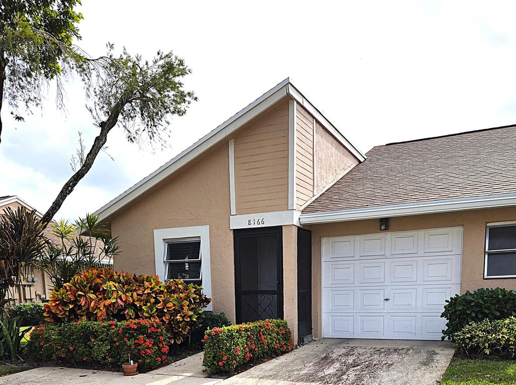 LOWEST PRICE GARAGE UNIT in Whisper Walk. (Champagne Model). Excellent location-short walk to Club/Pool/Mail. Not near turnpike, Lyons RD, or Yamato. 2/2 split plan. 1-Car Garage. Exceptionally clean unit awaiting your personal touch! Or, bring your toothbrush and move right in! Neutral tile throughout. Separate laundry room with extra storage. NEW Water Heater 7/12/25. Screened, covered, patio overlooks garden and is very private. Roll-down patio shutters. NEW ROOF and gutters 2024. Seller has paid full assessment. Assoc. requires 20% down. All room sizes are approximate & buyer advised to verify.. Whisper Walk is a beautiful, gated manicured community. There are many active groups-something for everyone. Tennis, Pickleball, Basketball, Trips,, social clubs, billiards. SOLD AS-IS