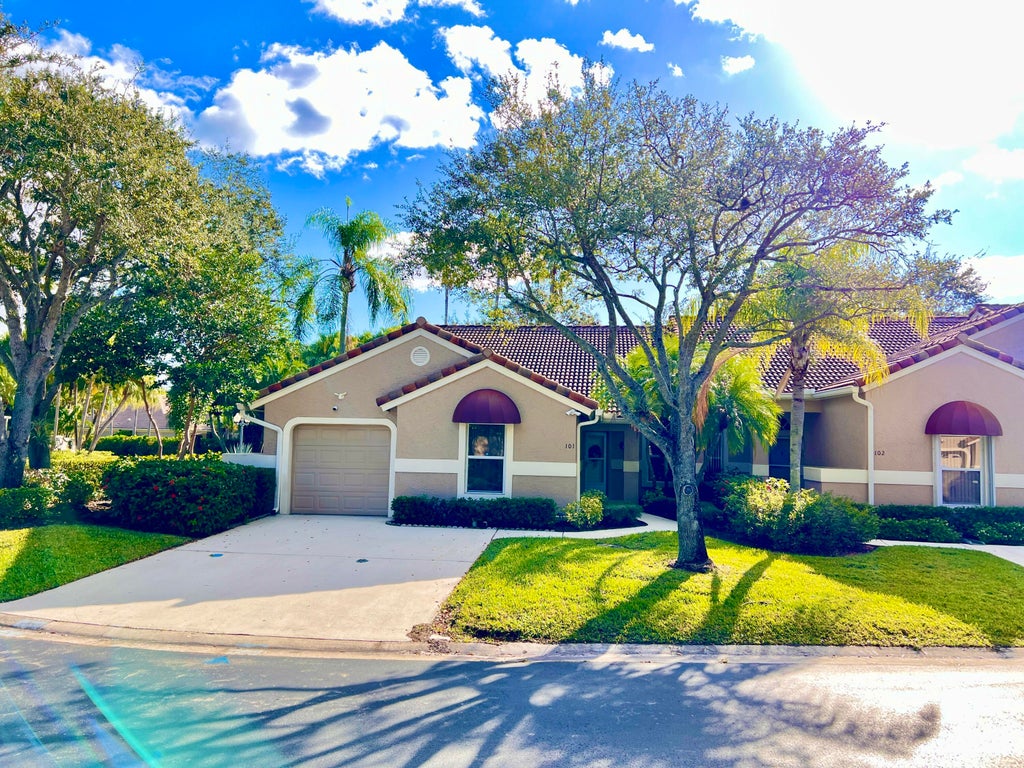 Welcome to this light and bright single-level end unit, featuring volume ceilings that enhance the spacious and airy ambiance. This beautifully updated home offers 3 bedrooms, 2 bathrooms, and a 1-car garage, making it an ideal choice for those seeking both comfort and style.The kitchen, renovated in 2022, boasts a modern design, while the guest bathroom was beautifully updated in 2020. The master bath showcases tasteful enhancements, offering a fresh, contemporary feel. Tile and wood flooring flow seamlessly throughout the home, and a separate laundry room equipped with a washer and dryer adds convenience to your daily routine.Located just steps away from the community pool, it's the perfect spot to relax and unwind.
