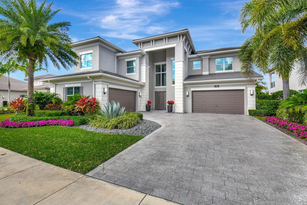 Enter into elegance with this Riverside model home, featuring superb upgrades and a breathtaking entrance with porcelain flooring. Situated on the best lot in Berkeley, this home offers a full waterfront view with five bedrooms and five-and-one-half baths. On the first level enjoy a regal dining room, a guest room with an ensuite, chef's kitchen equipped with a Sub-Zero refrigerator, Wolf gas cooktop, and a quartzite countertop on a huge island and dining area. Floor to ceiling glass enclosed wine rack. The family room boasts custom shelving, wallpaper, and accents. A customized tranquil club room features a full bar with amenities, custom seating, and remote-control shading. The outdoor area includes a summer kitchen with two grills, heated saltwater pool and spa, perfect for unwinding