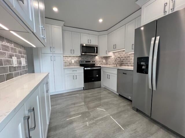 Completely ''STUNNING'' updated villa in a fantastic Boca Raton location, has been completely renovated, all-ages community. Features a brand-new kitchen with NEW stainless-steel appliances and designer lighting throughout. Beautiful new tile flooring runs seamlessly through the home. The spacious primary suite includes a brand-new, stunning bathroom and a walk-in closet. The second bedroom also boasts a brand-new bathroom. Enjoy two fenced-in patios for outdoor living and a dedicated laundry room with a full-sized washer and dryer. The unit also includes a carport. IMPACT HURRICANE WINDOWS AND SLIDINGS DOORS. Basic Cable & Internet included. Centrally located, near excellent schools, shopping, restaurants, & highways. MUST SEE!!!