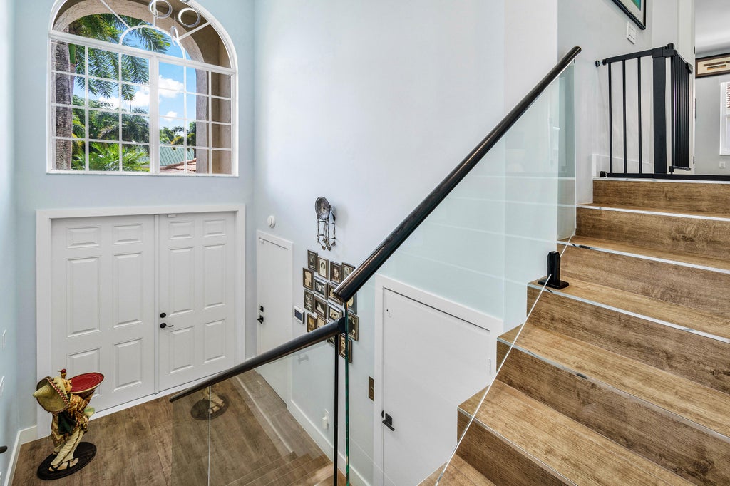Welcome to this impeccably renovated condo in The Polo Club, where Golf Memberships are available for the two 18-hole courses. Entering the foyer, you are greeted with the option to ascend the modern glass-railing staircase or use your private elevator to enter the main living spaces. Spanning a generous 2,430 square feet, this residence provides ample space with an open-concept design. Every detail of this home has been thoughtfully designed, including engineered wood flooring that flows seamlessly throughout. The gourmet kitchen is a masterpiece, featuring luxurious quartzite countertops with an oversized island and high-end appliances. Extended sleek cabinetry ensures that storage is stylish and functional, making this space as practical as stunning.