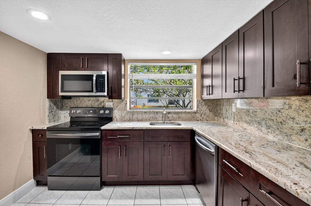 Beautifully updated Luxury model in the desirable Isle of Capri section in 55+ community of Kings Point. Two bedroom, two full baths, 1st floor unit with golf and water views. Tile floors through out, freshly painted, and stainless appliances. Large enclosed patio, stackable washer/dryer, and large walk in closet in the master bedroom.