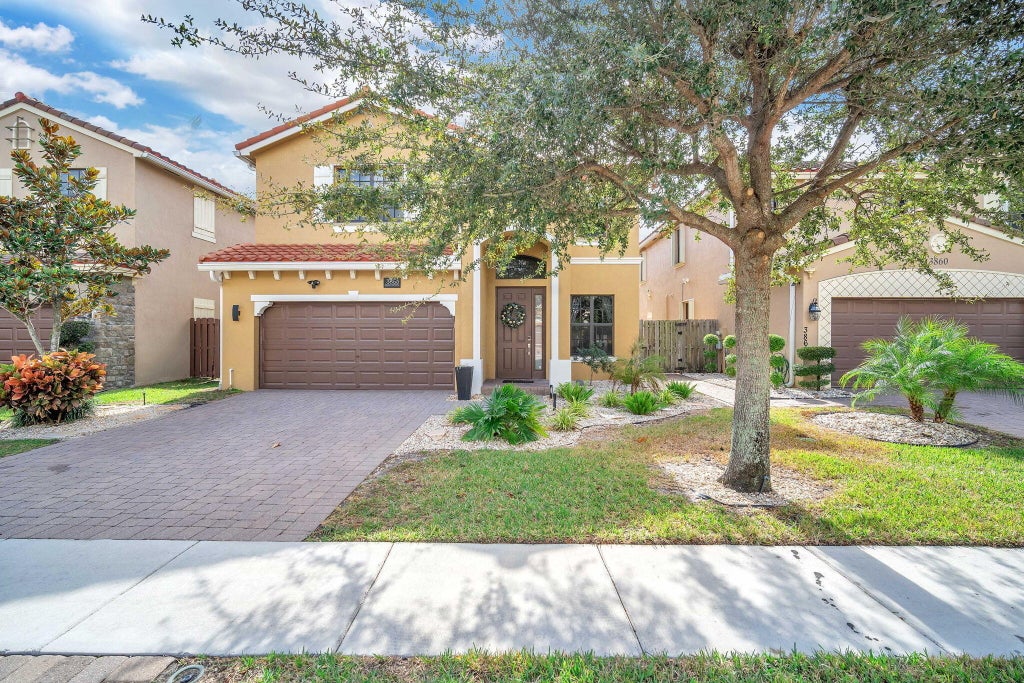 Stunning home in Aspen Glen, a boutique community. This 5-bedroom, 4-bathroom residence features a 2-car garage, pool, a modern Smart Home setup, including keyless entry, a Smart Thermostat, and Ring cameras. The open-concept design boasts 9' ceilings, a gourmet kitchen with granite countertops, stainless steel appliances, a walk-in pantry, and a breakfast nook. 1 bedroom and full bathroom downstairs off the family room! The upstairs primary suite offers dual walk-in closets and a spacious ensuite bathroom. Enjoy the bonus loft space upstairs, perfect for a den/office + 3 additional upstairs bedrooms. Backyard oasis features a sparkling pool, lovely landscaping, and garden views! Includes accordion shutters and panels. Low HOA, pet friendly. Near schools, shopping, beaches and parks.